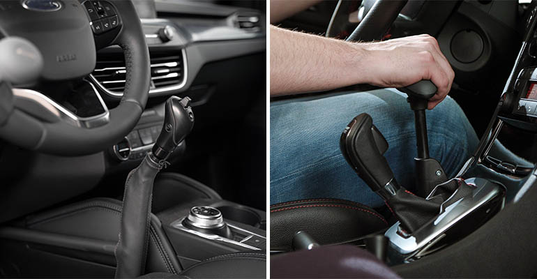 Anpassade handkontroller för gas och broms som gör det möjligt att köra bilen utan att använda fötterna.